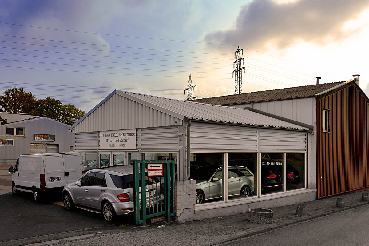 Auf dem Grundstück befinden sich mehrere Gewerbe-und Verkaufshallen des Einzelhandels sowie ein Autohandel und eine Kfz-Werkstatt. Die Nutzflächen haben Größen von 70 – 2200 m². Das Areal befindet sich am Ortsausgang Gerresheim in Richtung Erkrath. Der S-Bahnhof Gerresheim ist fußläufig in 10 Minuten zu erreichen.